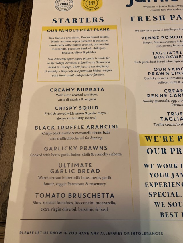 I have eaten at Jamie’s a few times previously (you can read about that here) so I was somewhat trying to work my way through the menu (in the name of research, of course!) mostly on the appetizer side, since there was no way I was not going with my favorite main course!