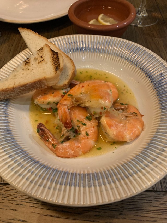 For my appetizer, I went with the Garlicky Prawns. It was the last of the appetizers on the menu that I hadn’t tried. And it was Garlicky! The prawns were good size and perfectly cooked. They were (for me) a tad too spicy, but I am a spice wimp so that doesn’t take too much! The ciabatta was hot and toasty and perfect for sopping up the garlic, herb, chili butter left in the bowl. The prawns themselves were served in the shell, which is fine, it doesn’t bother me, but they were HOT, steaming hot so it made them hard to peel without burning my fingers. Small challenges, but I persevered in the name of research!