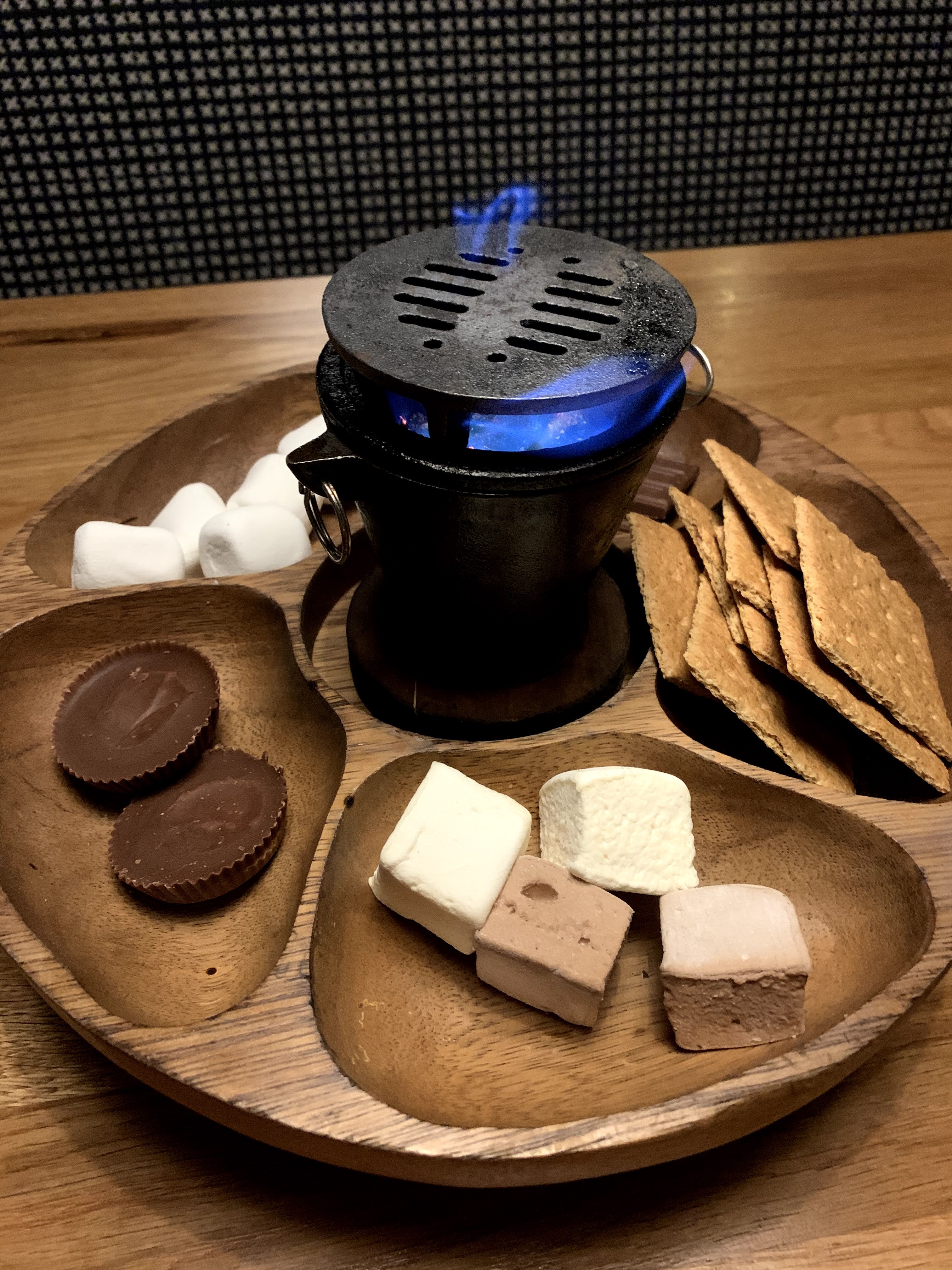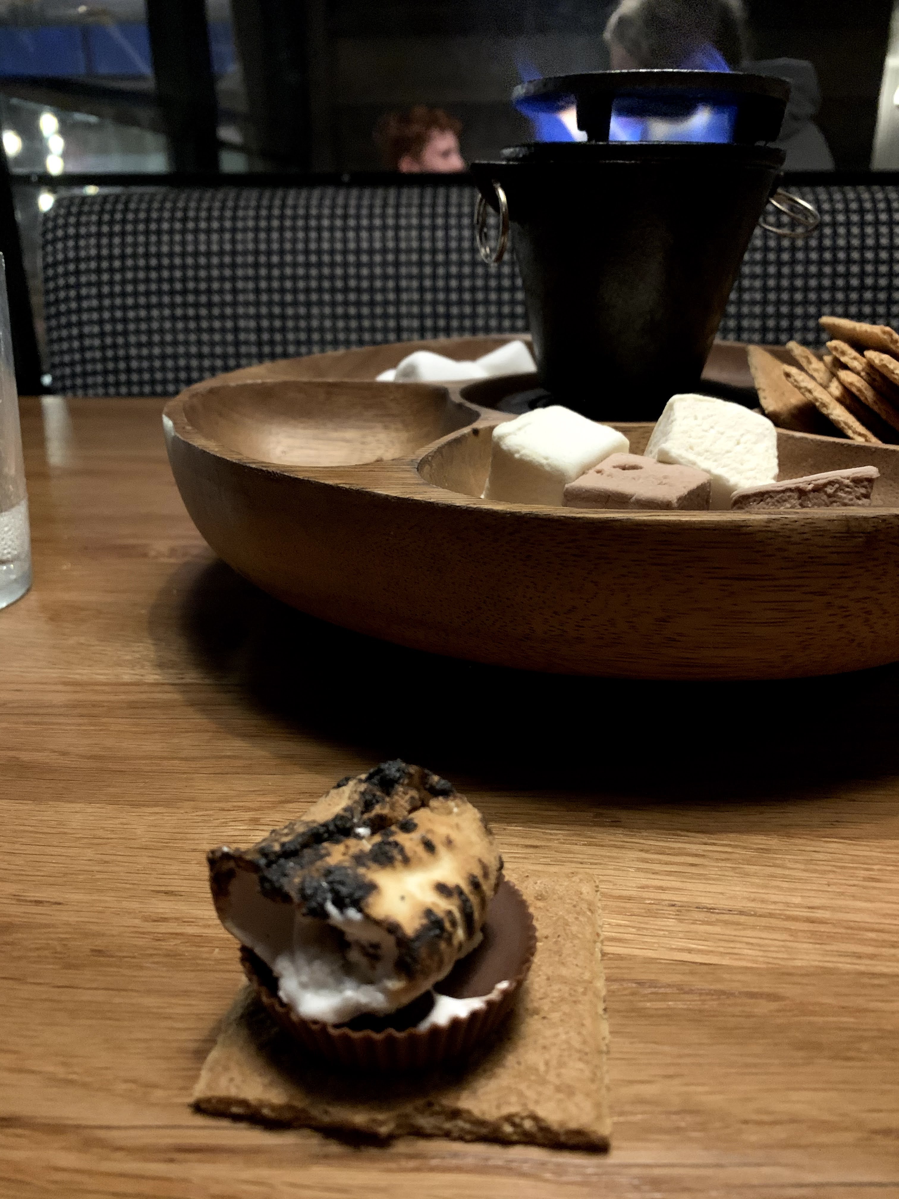 I don’t want to keep you in suspense…My wine finally arrived when I ordered dessert. I’ll get back to that, but let’s talk about that dessert. Big Fire is famous for tableside s’mores, and I couldn’t wait to try them. I am not really a dessert person, but I am a schtick person so if a meal or course also keeps me entertained, I am totally on board.